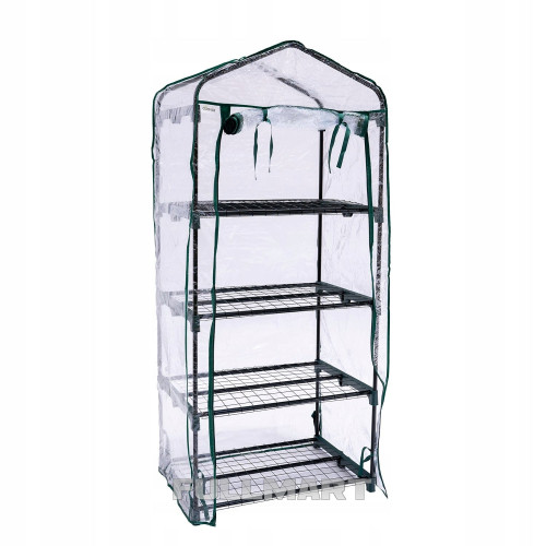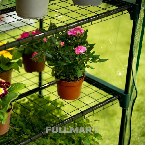 Теплица Kalmia очень легко и быстро собирается. Широкая рулонная дверь на молнии обеспечивает вентиляцию или защиту от погодных условий. В комплект входят четыре полки, использование которых позволит оптимально использовать пространство теплицы. В наборе входят все монтажные элементы: трубы и соединители для каркаса, пленка, четыре полки и инструкция.