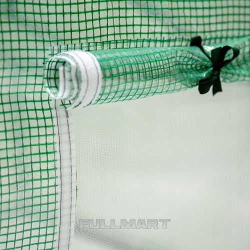 Окна теплицы имеют дополнительную москитную сетку, которая помогает поддерживать циркуляцию воздуха и защищает растения от насекомых.