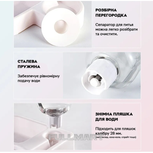 Съемная бутылка: Возможность использовать любую бутылку диаметром 28 мм, что делает пополнение воды максимально удобным.
