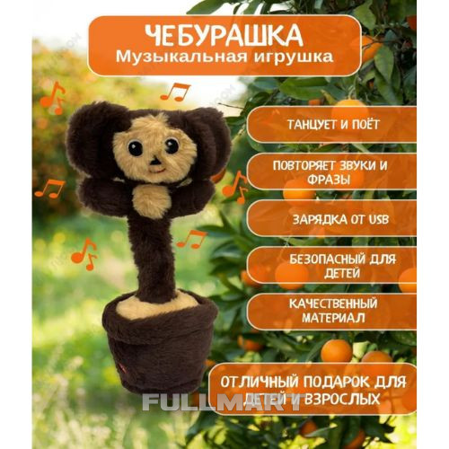 Мягкая игрушка оснащена встроенным аккумулятором, Вам не понадобятся батарейки. Игрушку удобно брать в гости, на прогулки и в поездки. Чебурашка станет прекрасным подарком взрослому или ребёнку. Танцующая игрушка изготовлена из гипоаллергенных материалов. Танцующий Чебурашка будет рад встрече со своими друзьями.