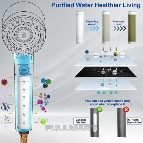 Система ультратонкой очистки: вы можете попробовать душевую воронку для смягчения воды DMG! наш обновленный хлопковый фильтр высокой плотности вдвое больше размера другого хлопкового фильтра, эффективнее удаляет хлор, фтор, тяжелые металлы и осадок, сбалансируя значение pH. Смягчающая вода делает вашу кожу более мягкой, а волосы гладкими, вливают в кожу полезные минералы. Визуальное окно удобно для проверки использования фильтра и замены его вовремя.