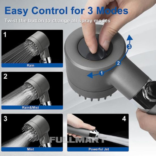 3+1 режимы разбрызгивания и кнопка ВЫКЛ./ВЫКЛ.: Ручная душевая воронка с различными настройками душа обеспечивает гибкость и разнообразие, включая режим дождя, режим массажа и смешанный режим, отвечающий всем потребностям вашей семьи в душе. Просто открутите воронку душу, чтобы получить мощный ручной распылитель, режим гидроструи также поможет вам удобно очистить везде, например плитку, углы. Вы можете легко нажать кнопку на палочке, чтобы остановить водопад.