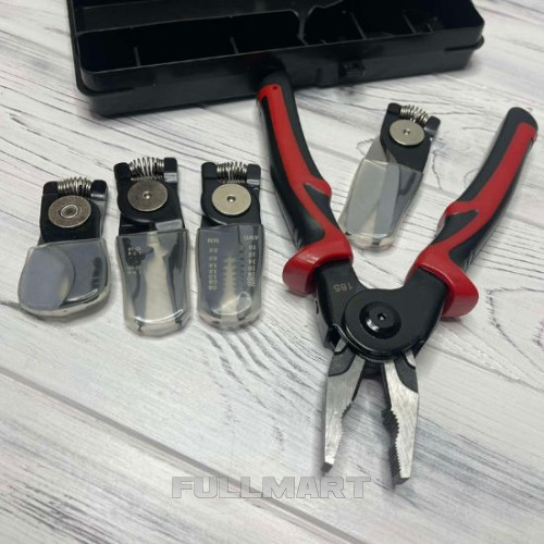 5-в-1 Многофункциональный набор инструментов: Этот набор плоскогубцев для снятия изоляции проводов поставляется с пятью различными головками, включая плоскогубцы, ножницы, кабельные резаки, инструменты для снятия изоляции проводов и головки для обжима. Дизайн 5-в-1 обеспечивает удобство и удовлетворяет все ваши разнообразные потребности.