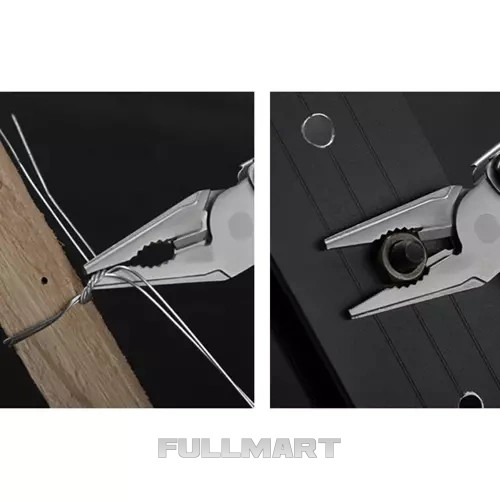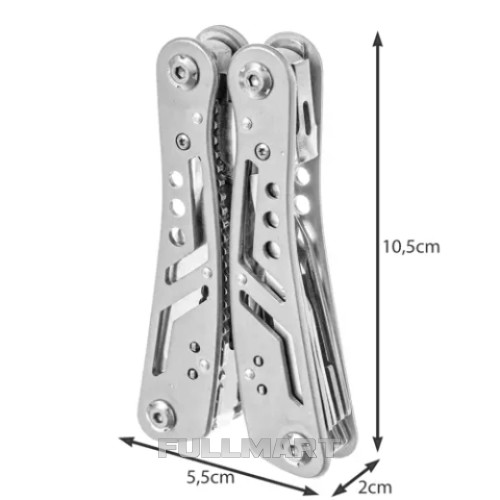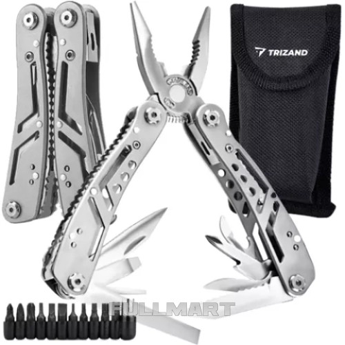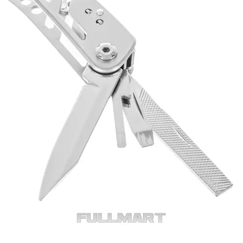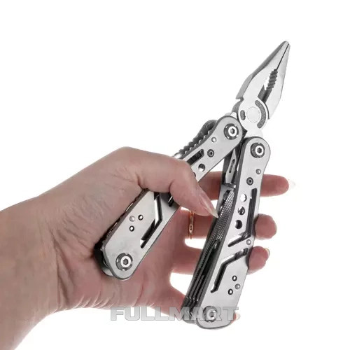 - 13 в 1 - продукт имеет целых 13 различных встроенных инструментов, с помощью которых можно справиться во время выживания, рыбалки, походов, кемпинга, в палатках, на работе или просто во время работы в саду. В состав мультитула входят нож, пильное полотно, плоскогубцы, открывалка для бутылок, консервный нож, отвертка, перочинный нож, пассатижи, резак и многое другое.