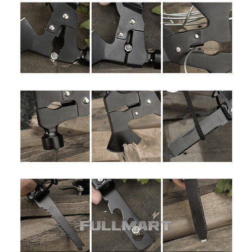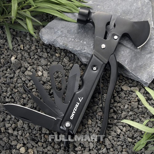 - 1 7 через 1 - продукт имеет целых 17 различных встроенных инструментов, с помощью которых можно справиться во время выживания, рыбалки, походов, кемпинга, в палатках, на работе или просто во время работы в саду. В состав мультитула входят: топор, плоскогубцы, напильник, скребок для рыбы, плоская отвертка, шестигранный ключ, гарпун, открывалка для бутылок, пила по дереву, крестовая отвертка, перочинный нож, молоток, проволока. резак, пассатижи, пассатижи, дверной упор и замок.