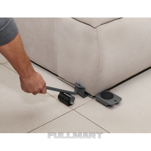 - 5в1 – в комплект входит полный комплект, позволяющий перевозить мебель. 4 стойки с 8 роликами и рычагом на 4 колесах. С помощью набора можно переместить груз массой до 150 кг.