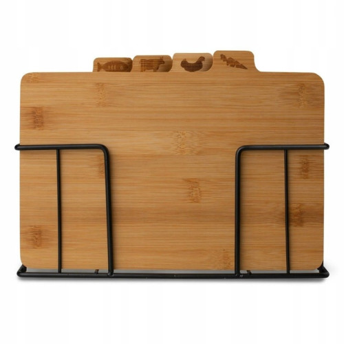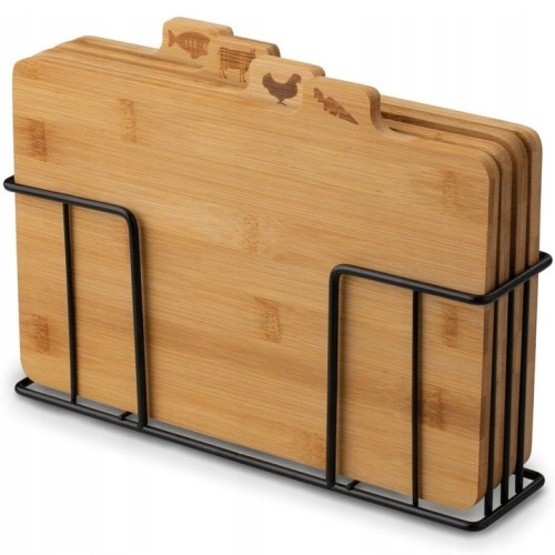 У набір входить: 4 бамбукові дошки, металева підставка.