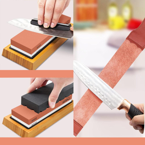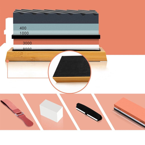Найменша градація 400 використовується для початкового заточування та ремонту леза, тоді як зернистість 1000 використовується для згладжування ріжучої кромки, ідеально підходить для щоденного використання. Після початкового заточування ви можете приступити до обробки та полірування леза за своїм бажанням, використовуючи камінь зернистістю 3000/4000.