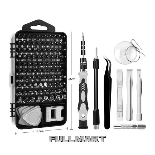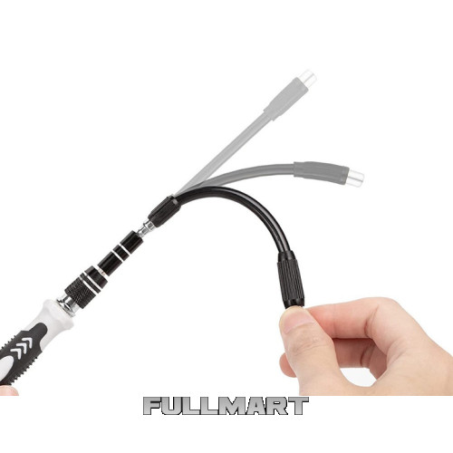 Портативный набор прецизионных отверток в удобном транспортировочном кейсе. Комплект идеально подходит для работы с различными типами устройств, электроникой и GSM оборудованием. Он включает в себя удобную рукоятку с скользящей ручкой, 3 вида удлинителей, в том числе одно гибкое, 100 сменных, магнитно удерживаемых бит, а также набор открывашек, благодаря которым мы можем легко попасть внутрь смартфона, планшета или ноутбука. В набор входят также прецизионный пинцет, специальная игла для извлечения лотка SIM-карты и намагничиватель/размагничиватель.