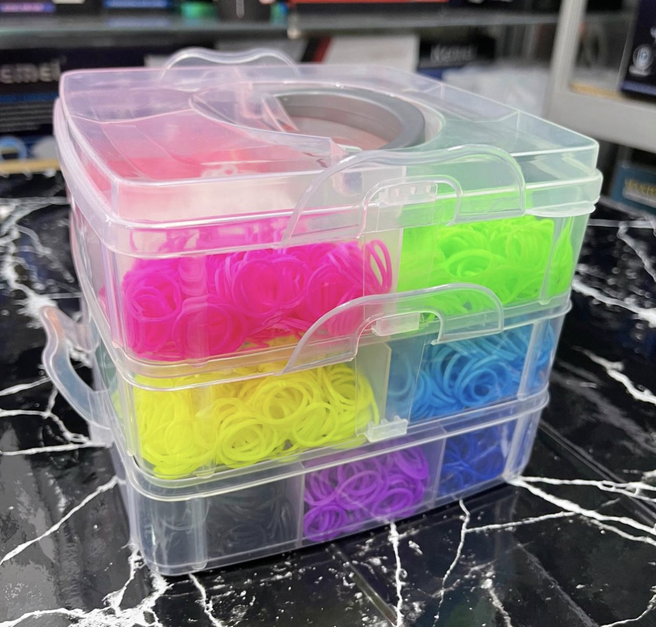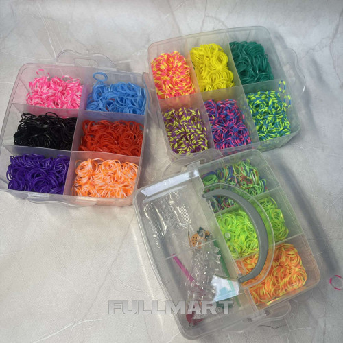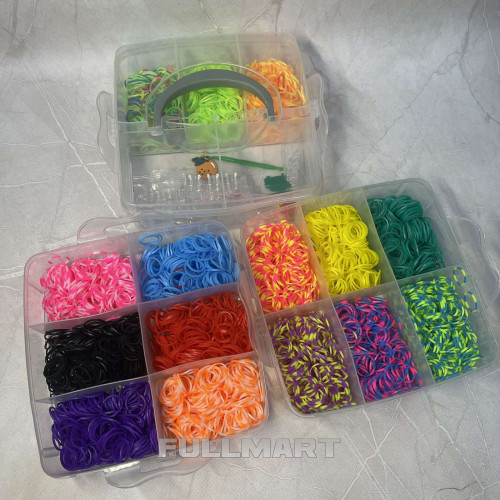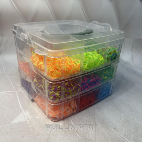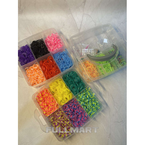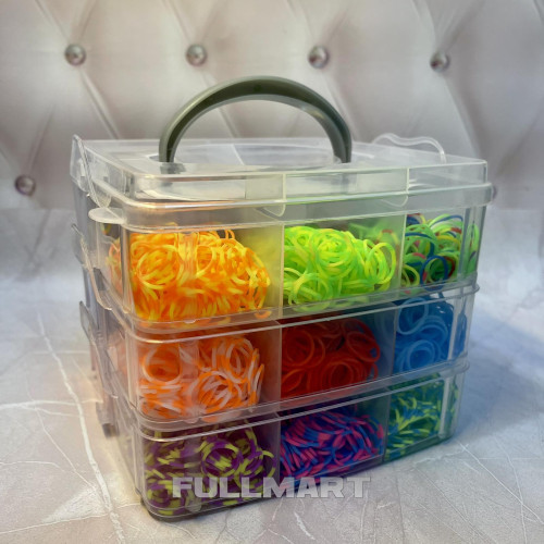 Набор резиночек для плетения браслетов - резиночки 1500 шт, крючок, инструменты.Упаковка пластиковый чемодан на 3 отделения.