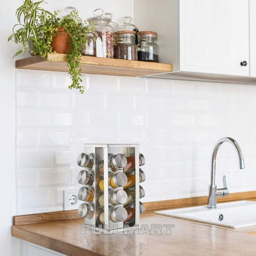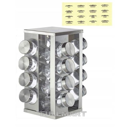 Положите край хаоса в вашем кухонном шкафу! Эта современная подставка для специй из нержавеющей стали в матовом серебристом цвете приведет в порядок ваш кухонный стол. 16 баночек для специй хранят вашу коллекцию специй от А для аниса до Я для корицы. Баночки для специй расположены на 4 уровнях и могут использоваться непосредственно в качестве шейкеров благодаря вставкам для шейкеров. Благодаря поворотному столику держатель для специй можно вращать на 360°, поэтому вы всегда будете иметь свои специи под рукой во время приготовления пищи или за обеденным столом.