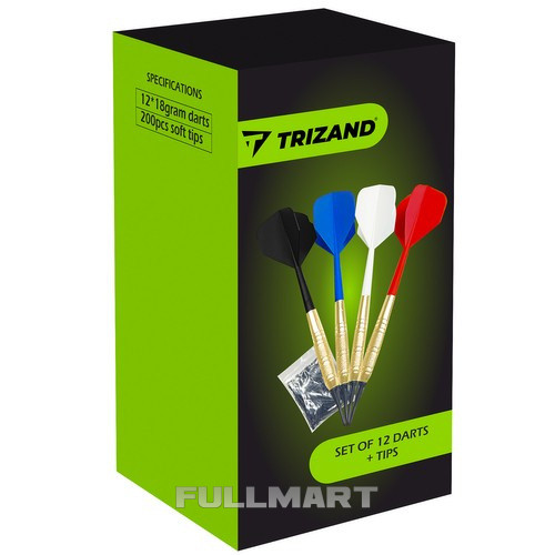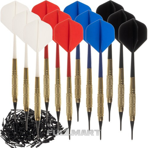 - НАБОР ИЗ 12 ДАРТС – это полный набор для дартса. В наборе 12 дротиков с перьями 4 цветов и 200 сменных мягких наконечников.