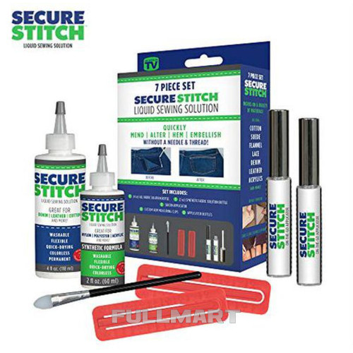 Устраняет разрывы на ткани, заделывает отверстия и подшивает одежду. Экономьте деньги и время с помощью набора для шитья Secure Stitch из 7ми элементов. Комплект из 7 предметов включает в себя: бутылку c клеем для натуральной ткани, бутылочка с клеем для синтетической ткани, аппликатор силиконовый, 2 емкости с удобным аппликатором, зажимы для ткани.