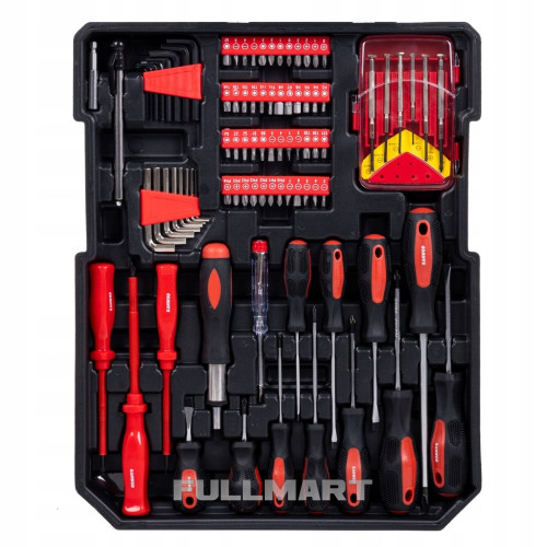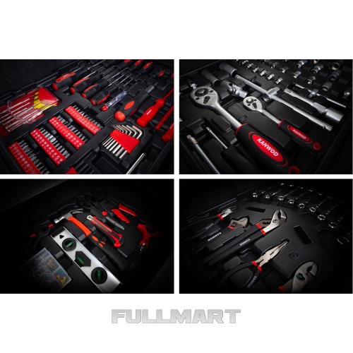 Удобные 4 съемных органайзера, группирующие инструменты по типам, позволят поддерживать порядок и обеспечат легкий доступ к элементам набора.