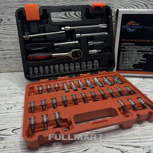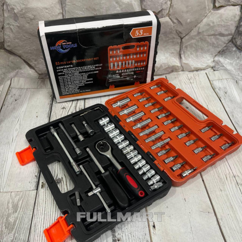 Набор ручного инструмента GoodKing K-10053, 53 предмета может использоваться при выполнении работ по ремонту автомобилей, электрических пил, кос, мотоблоков, мотоциклов. В комплекте поставляются кардан, имбусовые ключи, вороток, биты, торцевые головки, удлинители. Благодаря этому можно самостоятельно выполнить весь цикл ремонтных работ в бытовых условиях. Инструмент поставляется в кейсе из ударопрочного пластика с ручкой эргономичной формы, что повышает удобство хранения и транспортировки.