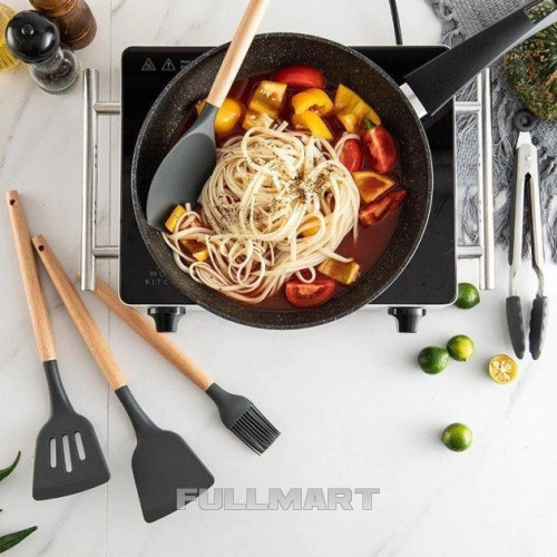 Он изготовлен из пищевого, термостойкого, антипригарного силикона и хорошо отполированного натурального дерева. Безопасен для использования с пищевыми продуктами, нетоксичен, без запахов, выдерживает температуру до 230°С.