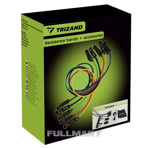 - СПЕЦИФИКАЦИЯ - материал: латекс, остальные: полиэстер + нержавеющая сталь + пена; количество резинок: 5 шт; сопротивление: 5,10,15,20,25 кг; размеры рукоятки: 19,5 х 13 см; размер дверной ручки: 30 см; размеры держателя для ног: 5 х 5-12 см; Вес комплекта 0,678 кг, вес упаковки: 0,773 кг.
