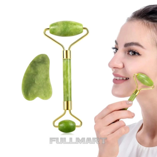 В комплекте с роликом идет нефритовый скребок Гуаша. Такой инструмент поможет выровнять тон кожи, улучшить лимфоток и подтянуть овал лица. При регулярном использовании вы навсегда избавитесь от припухлости вокруг глаз, вернете коже эластичность и упругость.
