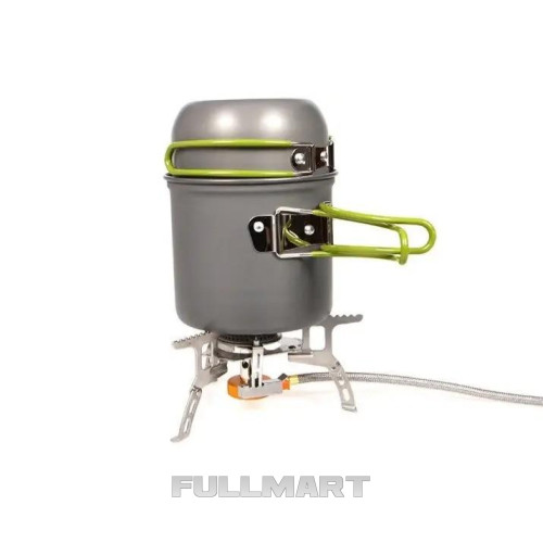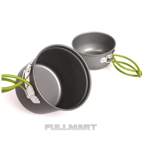 Чайник, котелок, сковорода, крышка и столовые приборы в одном компактном наборе. Он идеально подойдет для туристических путешествий, поездок на пикник, охоту и рыбалку.