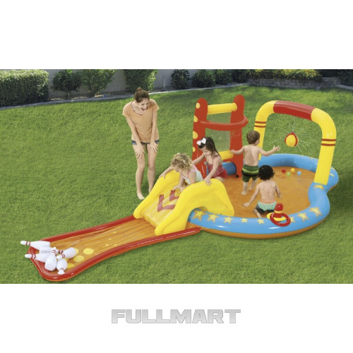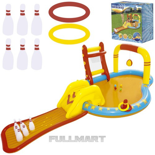 - МНОГИЕ ПРЕДМЕТЫ – в комплект входит множество элементов, среди которых: мячи и корзины, брызгающий водой мяч, бассейн, съемная горка, боулинг, надувные кольца и надувная подушка, которые обеспечивают разнообразие и веселье, позволяя вашему ребенку бесконечно веселиться.