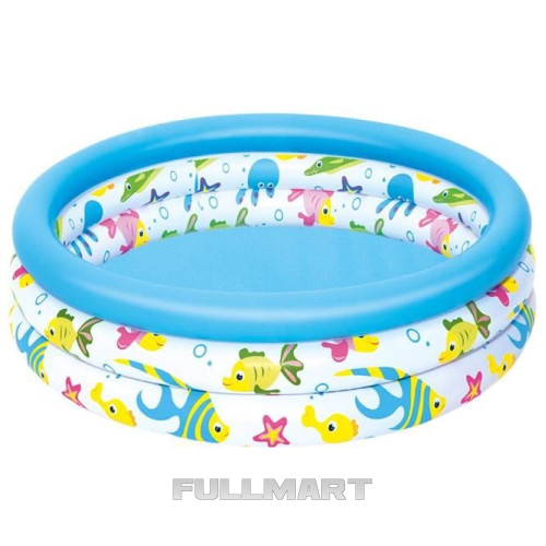 - СПЕЦИФИКАЦИЯ — Код товара Bestway: 51008; возраст: от 2 лет; материал: ПВХ; конструкция: 3 равных кольца; вместимость: 101 литр; размеры (ширина/высота): 102х25см; вес: 0,8 кг; вес в упаковке: 0,9 кг.