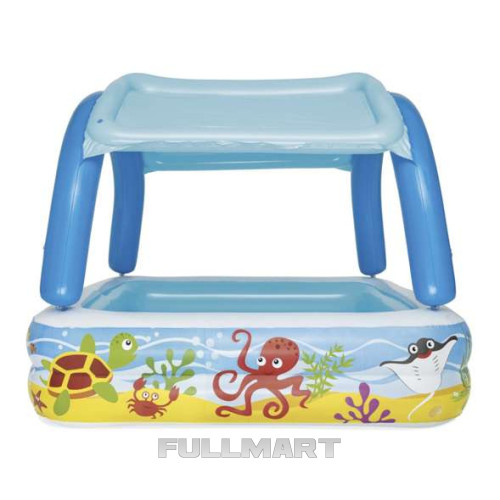 - НАдувной навес – бассейн предназначен для самых маленьких детей, благодаря устойчивому надувному навесу защищает от чрезмерного солнечного света. Навес предотвращает солнечные ожоги во время долгих летних игр.