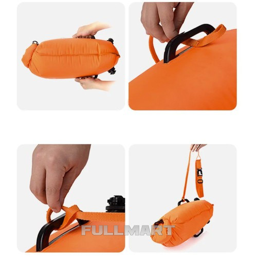 - ПРОСТОТА ИСПОЛЬЗОВАНИЯ - простой механизм выдувания и сдувания. Клапан прост в эксплуатации и обеспечивает герметичность. Регулируемый ремень позволяет удобно носить буй на талии, не сковывая движений.