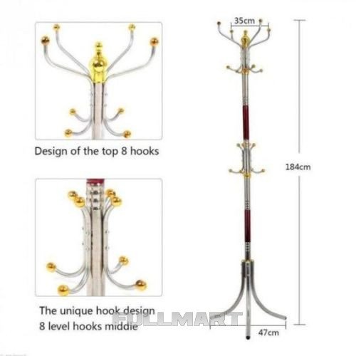 Вверху расположены восемь крючков для верхней одежды о головных уборов. По середине также имеется восемь крючков для хранения дамских сумочек, зонтов или детской одежды. Вешалка стойка Coat Rack - идеальное решение для организации домашнего пространства.