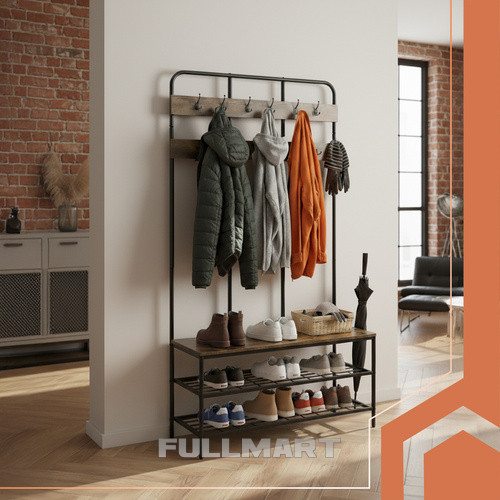 Полка Ruhhy — это идеальное сочетание функциональности и дизайна: она поможет вам хранить куртки, обувь и аксессуары в порядке, а также элегантно впишется в любой интерьер. Прочная металлическая конструкция и деревянные элементы в стиле лофт добавят индивидуальности, а простая сборка позволит вам наслаждаться идеально организованным пространством всего за несколько минут.