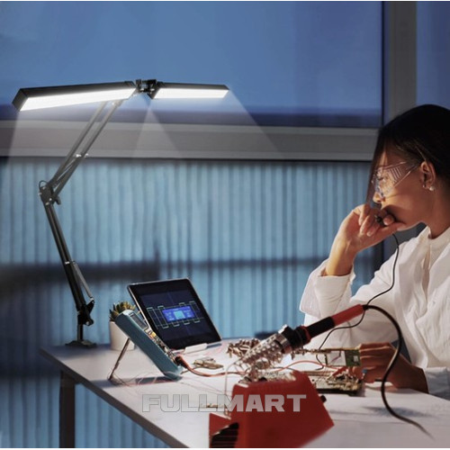 - 2 отдельных источника света: вы можете регулировать их независимо и устанавливать так, чтобы они освещали, например, два отдельных рабочих места