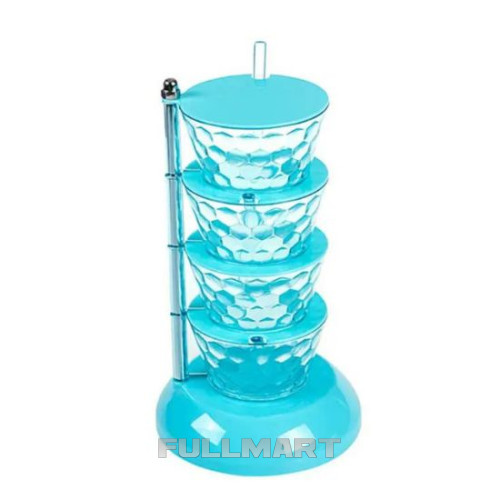 Кухонный вращающийся органайзер для специй состоит из четырех удобных ячеек одинаковой формы и размера. Благодаря вращающейся системе, вы всегда сможете убрать или добавить контейнер, что очень удобно и практично.