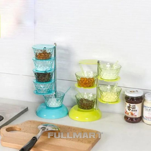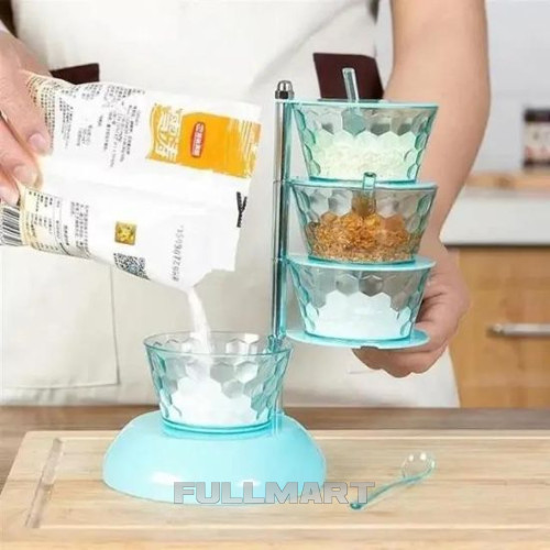 Баночки со специями размещаются на специальной вращающейся подставке изготовленной из пластика. Оригинальный набор эффектно украсит интерьер кухни и станет хорошим подарком любой хозяйке.