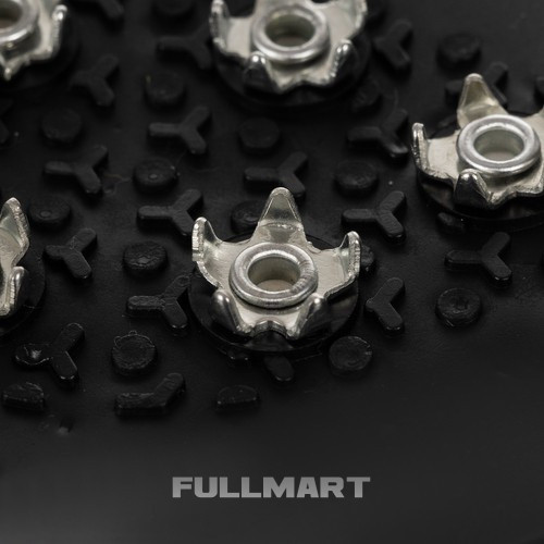 - СПЕЦИФИКАЦИЯ - цвет: черный/серебристый; материал: ТПЭ/металл; количество зубов в 1 раке: 10; количество шипов в 1 рейке: 50; размер: XL 44-47; толщина резины: 0,3 см; высота шипа: 3,5 мм; размеры квартиры: 24 х 14,5 см; вес: 0,215 кг; вес с упаковкой: 0,238 кг.