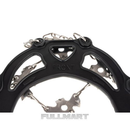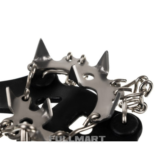 - ТЕХНИЧЕСКИЕ ХАРАКТЕРИСТИКИ - цвет: черный/серебристый; материал: ТПЭ/металл; количество зубов в 1 раке: 19; размер: Л 41-44; толщина резины, удерживающей цепи: 0,5 см; высота шипа: 1 см; вес: 332 г; вес с упаковкой: 364 г.