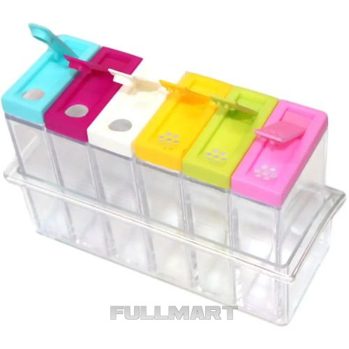 Набор емкостей для специй состоит из удобных контейнеров одинаковой формы и размера, которые, благодаря разноцветным крышкам и прозрачным стенкам, невозможно перепутать.