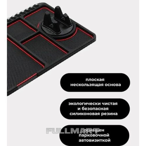 Нескользящий материал даст максимальную устойчивость и удобство расположения телефона, не оставляя при этом пятен и не портя поверхность в салоне Вашего авто. Благодаря специальному креплению для смартфона Вы сможете удобно расположить гаджет для просмотра фильмов или программы навигации. Встроенный держатель позволяет установить любой смартфон под удобным углом обзора — идеально подходит для использования телефона в качестве спутниковой навигации.