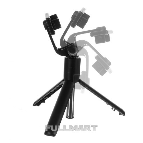 - 2в1 – в комплект входит монопод, который можно сложить в штатив (как штатив) и пульт для фотосъемки). Сменить режим легко и требует всего нескольких движений. Сдвиньте ручку к пульту и разложите ножки. Монопод простирается на длину 60 см, а держатель телефона вращается на 360 градусов.