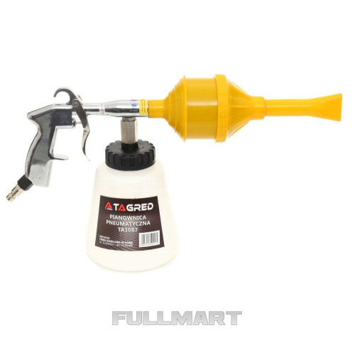 Устройство для вспенивания воздуха 6,5-9,2 бар , Пистолет для мойки 2 насадки, Пневматический пеногенераторПрофессиональный пеногенератор для очистки различных поверхностей с помощью активной пены. Благодаря своей конструкции, он полностью исключает необходимость применения моек высокого давления. Подключается к компрессору через резьбовой разъем 1/4", который идет в комплекте. Устройство оснащено регулировкой подачи химикатов и воздуха. Создает густую и долговременную пену, которая прочно удерживается на очищаемой поверхности, давая химическому средству возможность глубоко воздействовать на загрязнения и повышая эффективность очистки.