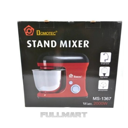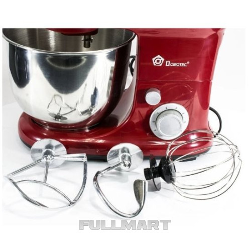 Тестомес Domotec MS-1367 - высококачественная кухонная машина для замеса теста. Производитель - торговая марка Domotec. Данная модель предназначена для бытового и полупрофессионального использования. Корпус изготовлен из прочного ABS пластика. Чаша для замеса выполнена из нержавеющей стали, съемная, надежно фиксируется. Объем чаши - 5 литров. Есть защита от брызг с отверстием для добавления ингредиентов во время работы тестомеса. На боковой панели расположен регулятор скорости, предусмотрено 6 скоростных режимов. В комплекте три насадки - венчик для взбивания, крюк для замеса тугого теста и фигурная насадка для замеса разных видов теста. Благодаря ножкам-присоскам тестомес надежно располагается на любой поверхности и обеспечивает комфортную работу