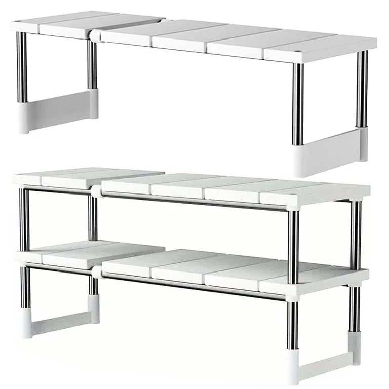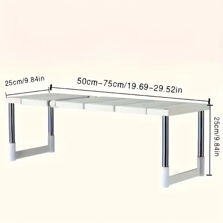 Полка выдвижная, то есть вы можете регулировать ее ширину в соответствии с имеющимся пространством. Эту выдвижную полку можно использовать в разных местах дома, таких как кухня, ванная или под раковиной.