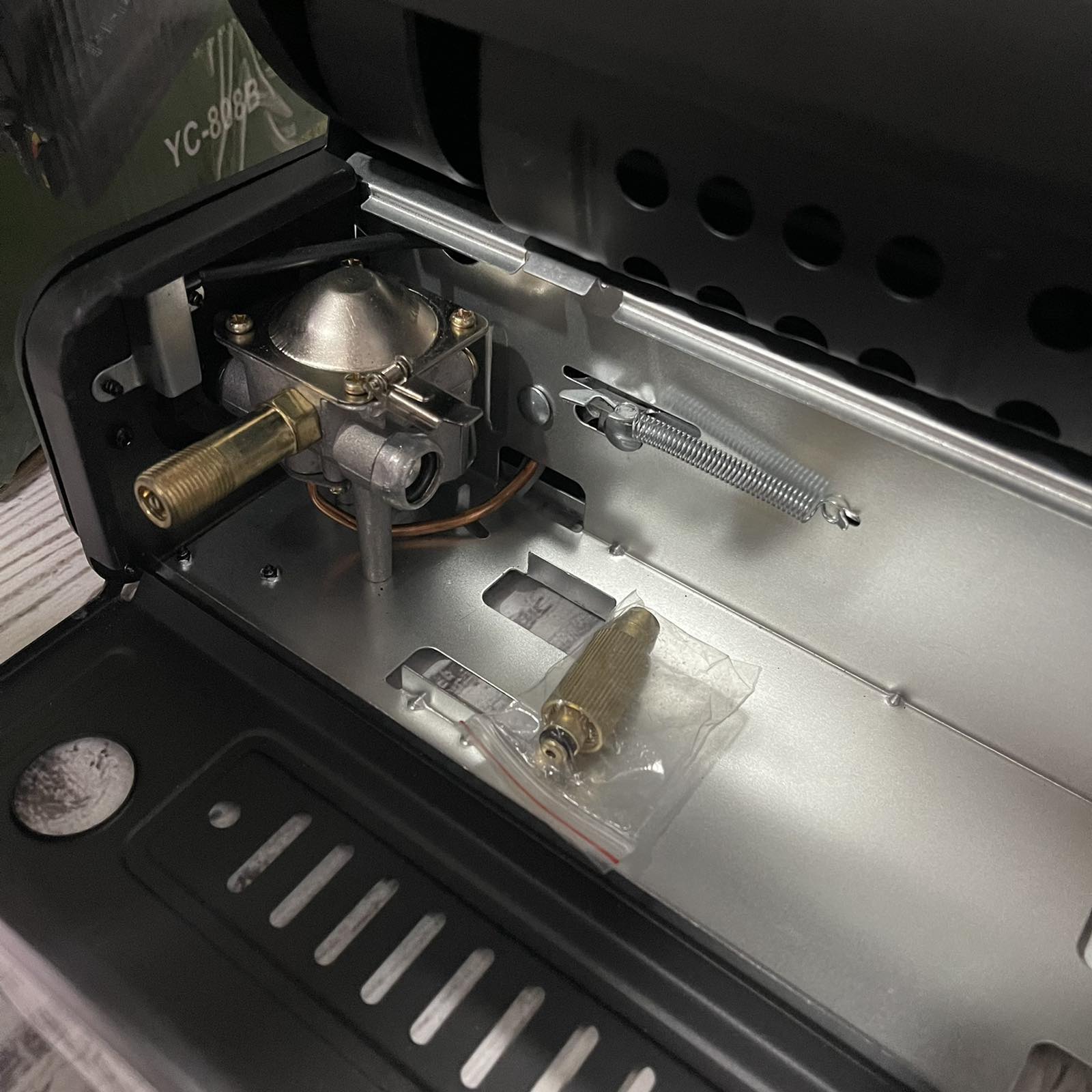 Газовый отопитель с пезоподжигом и переходником под газовый баллон.
