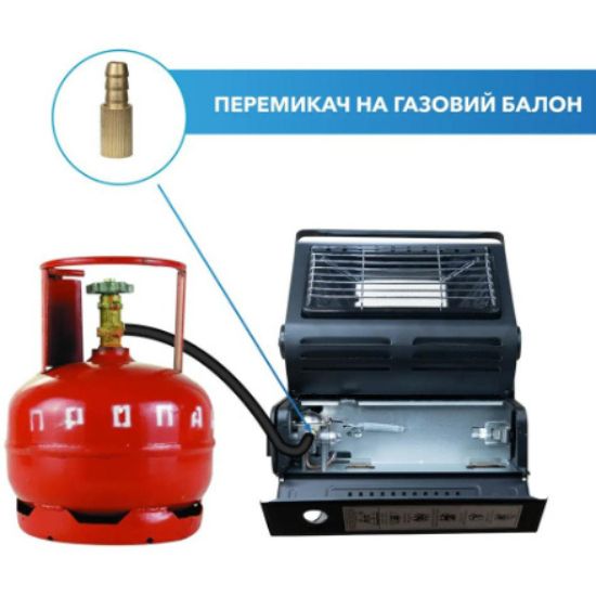 Газовый обогреватель работает путем нагревания керамической пластины, питания от гангового баллона объемом 220.