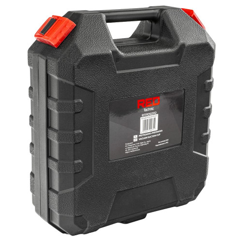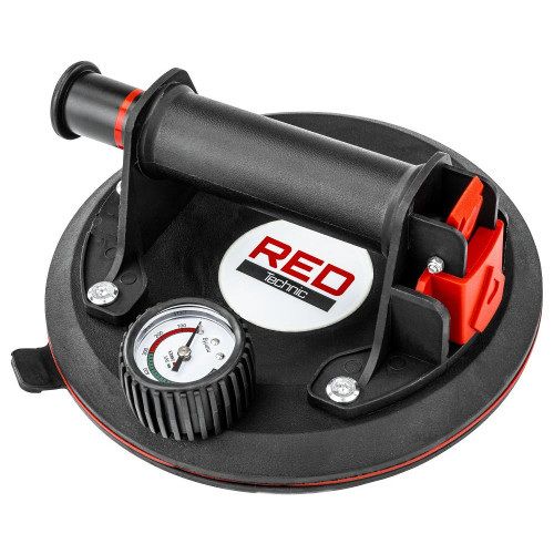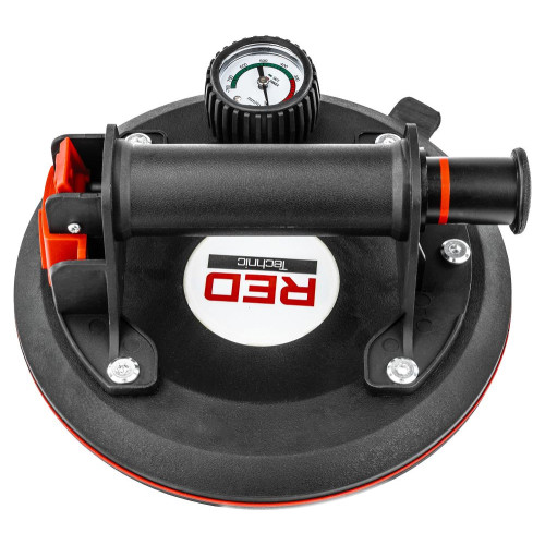 Червоний маркер вказує, коли потрібно використовувати насос для збільшення вакууму, забезпечуючи надійне та стабільне кріплення навіть під час тривалого використання. Матова ручка не тільки додає естетичності, але й забезпечує комфортну роботу, дозволяючи користувачеві зосередитися на виконанні завдання без надмірної втоми.