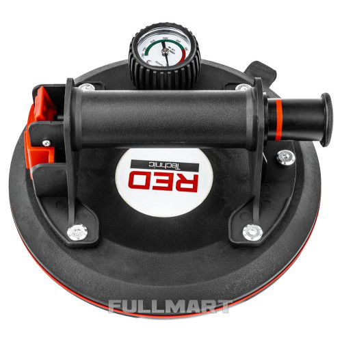 Рукоятка оснащена аналоговым манометром, который позволяет считывать и контролировать давление между резиной присоски и перемещаемой заготовкой. Благодаря легко читаемой шкале вы можете быть уверены, что в любой момент узнаете, когда захват начнет терять прочность и потребует откачки воздуха. Прижмите ручку плоской стороной к материалу, нажав кнопку насоса несколько раз (примерно 6 - 9 раз), пока стрелка из красного поля не переместится в зеленое поле.