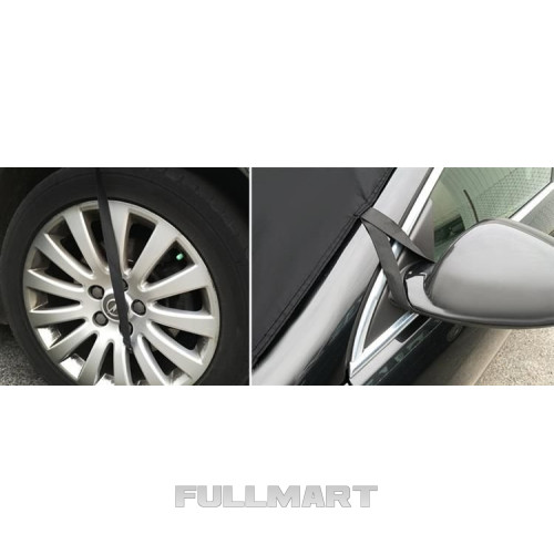 - КРЮЧКИ – крючки вшиты в концы монтажных резинок. Благодаря им вы легко сможете прикрепить коврик к колесам. Хорошо натянутый коврик прилегает к стеклу и защищает от снега и солнечных лучей.
