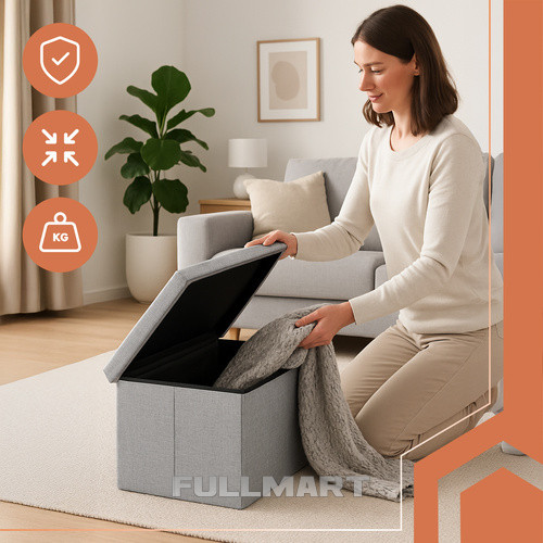 Пуф для хранения RUHHY — практичное и стильное решение для вашего интерьера. Обитый водонепроницаемой тканью с армированием из МДФ, он имеет мягкое сиденье и вместительный отсек для хранения объёмом 110 литров — идеальное решение для хранения безделушек, игрушек или одеял. Складная конструкция, высокое качество изготовления и максимальная грузоподъёмность сочетают в себе функциональность и элегантный вид — идеальное дополнение к гостиной, спальне или прихожей.