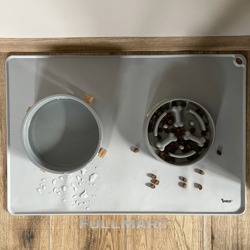 Практичное решение, которое защищает пол и удерживает миски на месте во время еды.