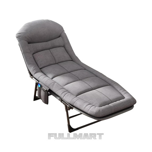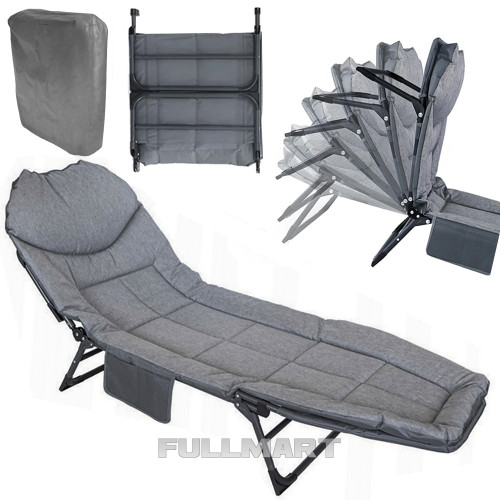Наша эргономичная раскладушка-шезлонг легкая и прочная, с надежной стальной рамой, покрытой полимерной краской. Ножки раскладушки имеют широкое основание-подошву и могут регулироваться по высоте для устойчивости и чтобы не проваливаться в мягкой почве. Матрас на раскладушке изготовлен из плотной ткани оксфорд 600D и наполнен поролоном, который закреплен внутри стежкой и не смещается.