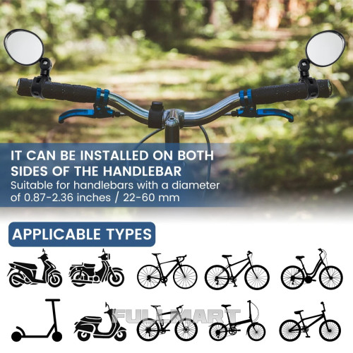 Подходит для большинства велосипедов Эти ручки велосипедного зеркала подходят для левой и правой сторон. Подходит для руля диаметром 0,87-2,36 дюйма/22-60 мм и может быть установлен с обеих сторон руля.