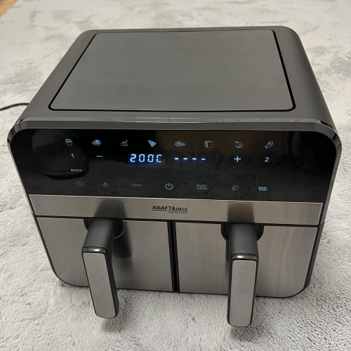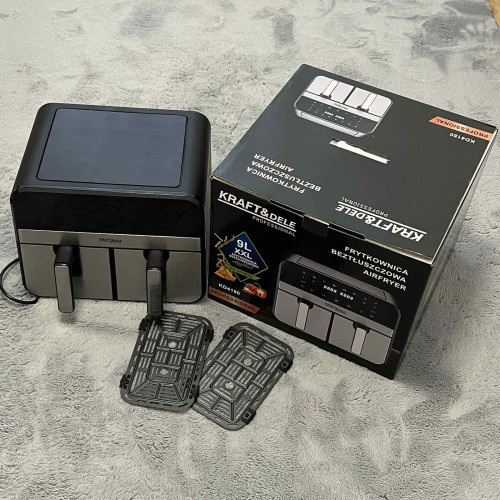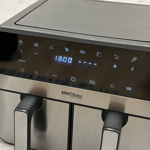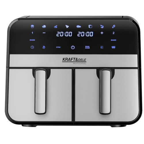 Аэрофритюрница без жира 9л. 2500 w с двумя камерами – современное решение для быстрого и полезного приготовления пищи. Технология циркуляции горячего воздуха позволяет готовить блюда с минимальным количеством масла или без него, сохраняя вкус и хрустящую корочку.